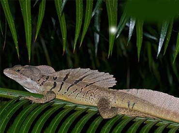 Common Basilisk Lizard spend most of their time on the ground but sleep in perches up to 20 meters high at night. Its diet consists of insects like beetles or dragon flies, flowers and small snakes, birds, eggs and fish. They inhabit lowland dry, moist forests, often adjacent to rivers and other waterways.